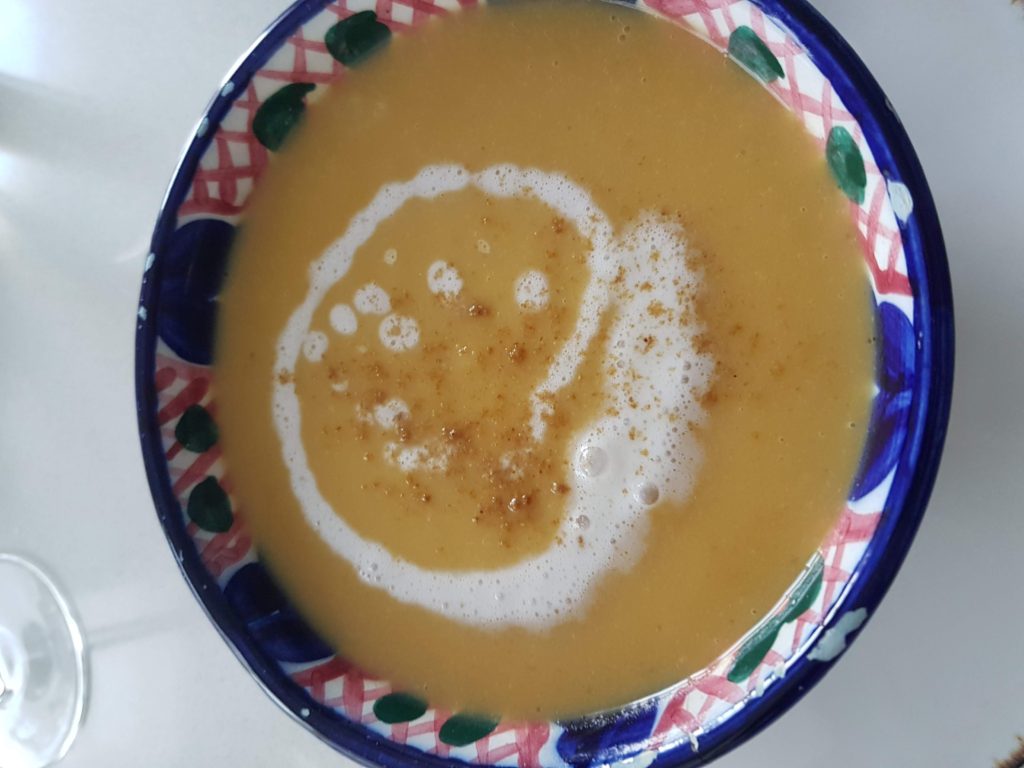 - En un robot o con la batidora trituramos la cebolla pelada y cortada en trozos, el jengibre rallado, el ajo picado, la guindilla sin las semillas, el comino, la cúrcuma, la canela, el pimentón, el cilantro, el tomate concentrado y el aceite de oliva. Debemos conseguir una pasta homogenea. Reservamos.