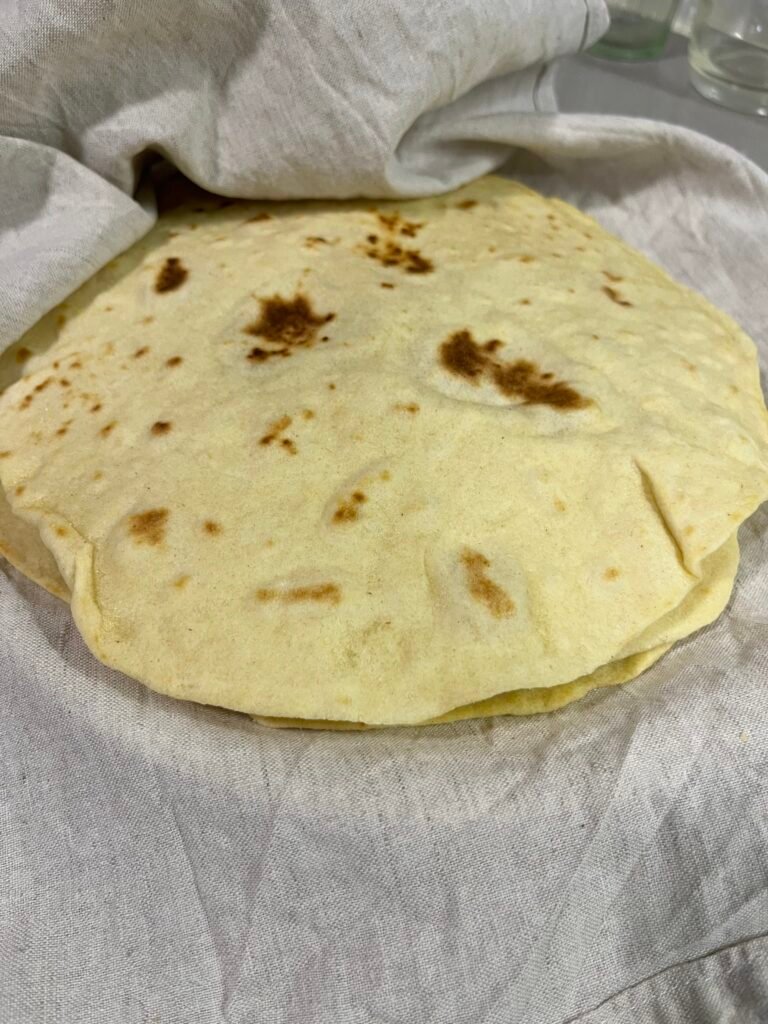 Este es un pan que se hace muy rápido porque tiene muy poca fermentación. En esta receta hemos puesto un poco de harina integral como indicaba Ibán Yarza, pero puedes usar las harinas que más te gusten. Una vez listas, envuélvelas en un paño para conservarlas durante más tiempo antes de rellenarla con lo que te apetezca.